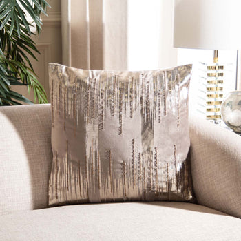 The metallic striations and fine beaded embellishments of this Prasla Pillow updates any Decor with just a touch of dramatic glamour. Shimmering in gold and taupe, Prasla is ultra soft to the touch in smooth synthetic fabric and includes a discreet zipper for easy care and cleaning.