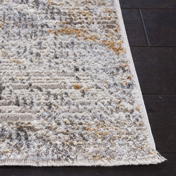 The rug features a plush pile height of 3/8", creating a soft underfoot experience that is both comfortable and luxurious. The detailed pattern displayed in the image showcases a dynamic abstract design, full of movement and texture that will captivate the eye and add depth to your room.