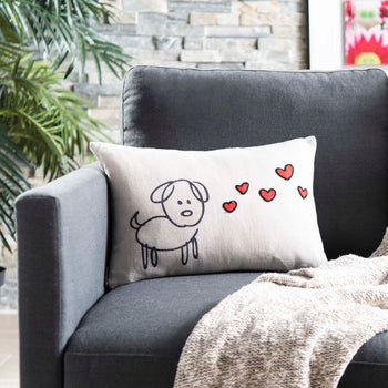 Everyone loves puppies, and so will your decor with the Puppy Love Pillow from Safavieh. An animated design against a warm cream cover makes Puppy Love a must hug accent pillow ideal for the entryway bench, kids rooms, love seats or family room sofa. A hidden zipper enclosure ensures easy access to care for functional fun.