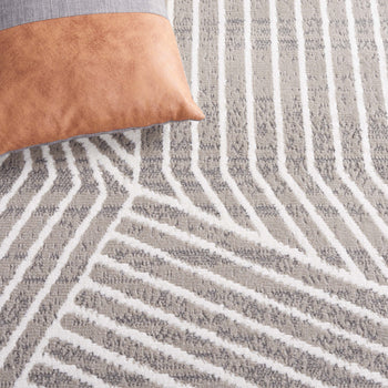The elegant ivory and grey color palette weaves a timeless narrative of sophistication into your home. Expertly power-loomed with high-grade polypropylene, this durable piece promises long-lasting beauty and easy maintenance, ideal for busy households.