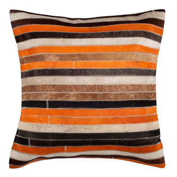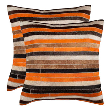 Add geometric pizzazz to your sofa or bed with the textural Quinn Pillow (set of two), with horizontal bands of cowhide in rich autumn tones, bringing cozy warmth to any room. This casual but sophisticated striped pillow is backed in solid suede.