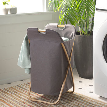 Keep your home tidy and organized at all times with the convenience of our Quinine laundry basket. Featuring a bamboo butterfly frame and a grey fabric basket, our laundry basket remains both stylish and handy. Its removable laundry bag includes handles, allowing you to easily haul clothes from room to room. Our roomy laundry basket can double up as a hamper to increase the organization and efficiency of your laundry room, bedroom, or bath.