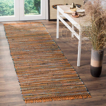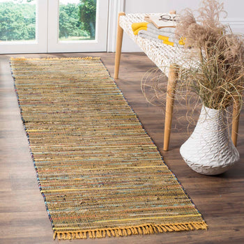Proudly made in India, this rug showcases a rich gold palette interlaced with a multitude of vibrant colors, creating a multi-dimensional visual feast that complements any room's decor. The carefully selected cotton material not only brings a soft touch underfoot but also ensures durability for everyday use.