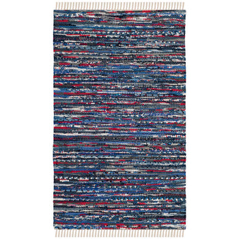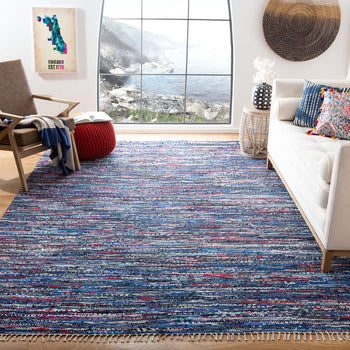Infuse your space with the intricacy and vibrant hues of our hand woven accent rug, measuring a compact 2 feet by 3 feet. Designed with a 1/4 inch pile height, this blue/multi-colored rug showcases an array of shades, flawlessly intertwined to create a visual spectacle reminiscent of a painter's brush strokes. The heart of Indian craftsmanship is evident in every weave of this cotton masterpiece, promising both sustainability and comfort underfoot.