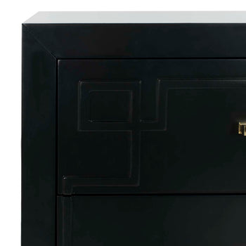 Bring Chinoiserie chic glamour to any room with this stunning Raina Chest. The striking carved details and sleek gold hardware adorning its three spacious drawers make Raina absolutely breathtaking, while a sleek black finish completes the couturier look.