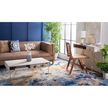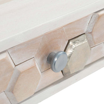 This stunning Raveena Coffee Table makes a bold style statement with its luxurious carved honeycomb design. Carefully crafted, its captivating pattern adds a dramatic flair to its rich walnut finish. Oversized brass hairpin legs add retro charm.