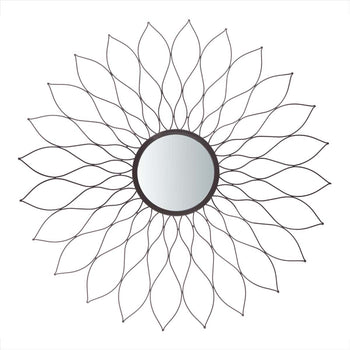 Bursting with an explosion of floral style, this dramatic contemporary mirror makes any living room blossom. Its dramatic minimalist petals are crafted with the strength of iron and finished in a luxurious champagne hue. Designers love its artistic edge.
