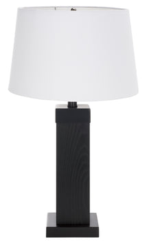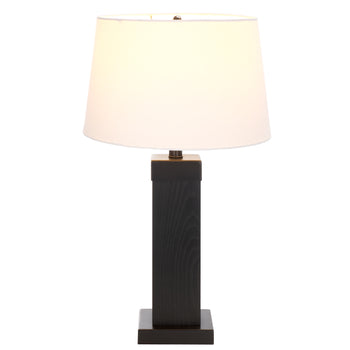 Elevate your decor with the Reine 24 inch table lamp. A blend of simplicity and elegance, this lamp features a sleek black finish that complements any space. Crafted with an oak wood veneer and metal body, it showcases a fabric shade that offers a warm and inviting glow. Whether placed on a bedside table or in a living room setting, the Reine lamp delivers both aesthetic appeal and functional lighting. Its versatile design seamlessly adapts to modern and classic interiors alike, making it a perfect choice for enhancing your home ambiance. Discover how the Reine table lamp can be the finishing touch in your decor scheme.