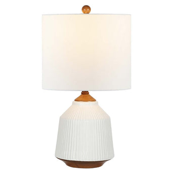 The eye-catching textural intrigue of this Relion Table Lamp awakens any interior with a rich sense of depth and motion. Relion's pleated white ceramic is perfectly balanced by a crisp drum shade and brown tapered base.
