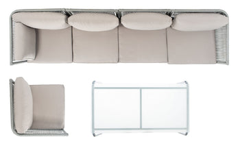 Entertain under the stars in high fashion style with this Remsin Living Set. Remsin's spacious sofa provides ample, comfortable seating for you and your guests with its plush cushions and wraparound frame, while a glass top coffee table creates the ideal surface for plentiful drinks and hors d'oeuvres.