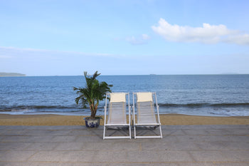 Inhale, exhale and unwind in style. This luxurious contemporary relax chair with beige pillow soothes the soul in any outdoor oasis as it cradles your body with the curves of its beautifully crafted grey-finished eucalyptus wood frame and chic complimentary pillow.