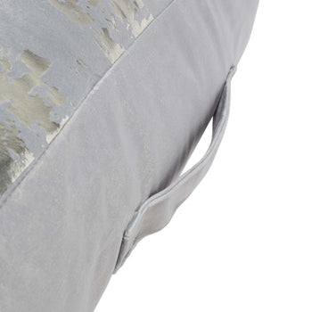 Beautifully highlighting all of the allure of modern ombre art, this Rensia Floor Pillow is ideal for today's bold contemporary Decor. A distressed, shimmering silver finish adds a chic touch to Rensia's soft grey cover. Perfect for impromptu gatherings, extra guests, or family game night.