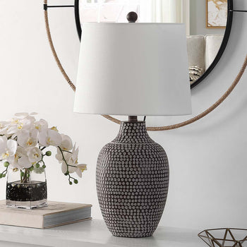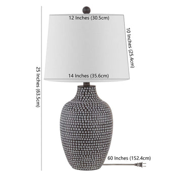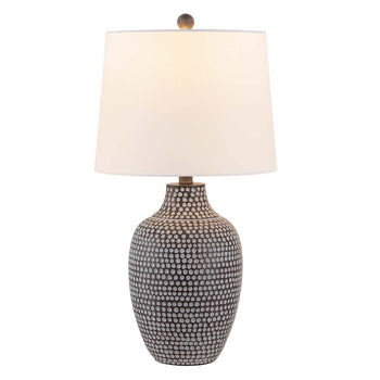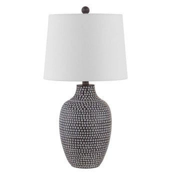 Inspired by ancient artistry, this Resler Table Lamp is perfect for contemporary-boho interiors. Soft earthy hues and asymmetrical dotted pattern gives Resler the look of a vintage collector's piece while a tapered drum shade makes it thoroughly modern.