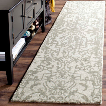 Introducing our exquisite 2' X 3' accent area rug, a masterpiece crafted with the finest 100% wool pile. This hand-tufted gem originates from the rich cultural heritage of India, boasting a timeless elegance. Adorn your space with a blend of classic ivory and serene blue hues, embodied within a sophisticated pattern that draws inspiration from traditional designs. The intricate floral and scroll motifs evoke a sense of regal charm and luxury, making this rug an ideal choice for those who appreciate the finer details in life. Perfect for adding a touch of warmth and refinement to any room, this rug is not just a floor covering but a piece of art that speaks volumes of your impeccable taste.