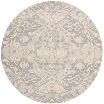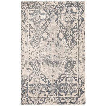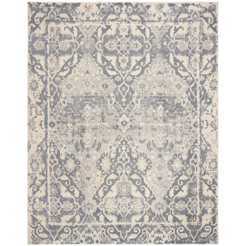 Crafted in the rich textile heritage of India, this rug is not only a tactile delight but also a visual masterpiece. Its intricate pattern is reminiscent of timeless designs, featuring a harmonious interplay of geometric and organic motifs that exude a sense of balance and grace. The contrast between the deep charcoal and the striking ivory highlights the delicate intricacies within the design, making this rug a captivating centerpiece for any room.