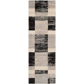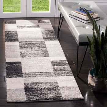 The simple mid-century modern aesthetic is refreshed in this Retro rug by Safavieh. Streaks of dark grey layer over a soft grey synthetic fiber pile for an alluring look that will hold its marvelous imagery for years to come. An ideal floor coveringto accentuate metro-modern decor.