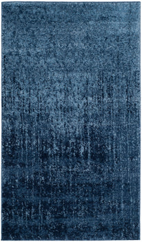Mid-century modern style is marvelously revitalized in this tone-on-tone Retro rug by Safavieh. Gradients of deep blue cascade down and across the plush synthetic yarn pile. This durable, power-loomed floor covering is a wonderful choice to accentuate clean-lined, modern home furnishings.