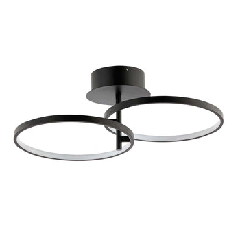A statement piece for any fashion-forward interior, this Reyah Flush Mount is effortlessly engaging. Reyah's dual light sources provide an artistic sense of depth and motion, and a matte black finish ensures it seamlessly accents any room.
