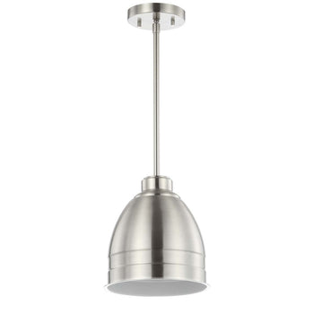 Both classic and modern, this luxurious Riley Pendant will have heads turning in any living room. Designed to highlight its versatile minimalist aesthetic, Riley's sleek metal shade features a nickel finish to perfectly suit any decor style.