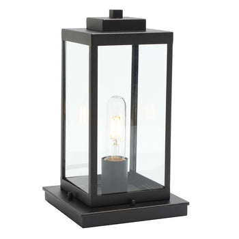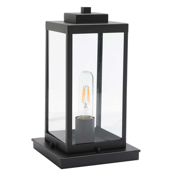Embrace a warm and welcoming addition to any outdoor space with Rinnah outdoor lamp. Refined to its striking essentials, our clean-lined and minimal lamp harmonizes with any style or decor. It features a sleek bronze finish to lend bold, industrial aesthetics. Delivering a warm and inviting glow, our small and convenient lamp can fit anywhere to uplift the ambiance of your outdoor dinners and gatherings.
