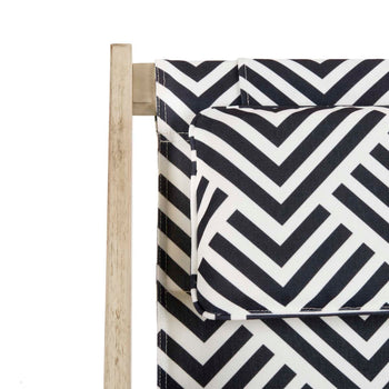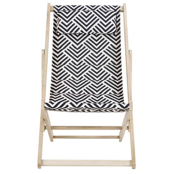 Resorts along the Italian Riviera inspired this modern foldable sling chair. A new classic, its crafted with soothing whitewashed wood and boasts a chic contemporary navy and white contemporary pattern. Ideal poolside or in any outdoor living space.