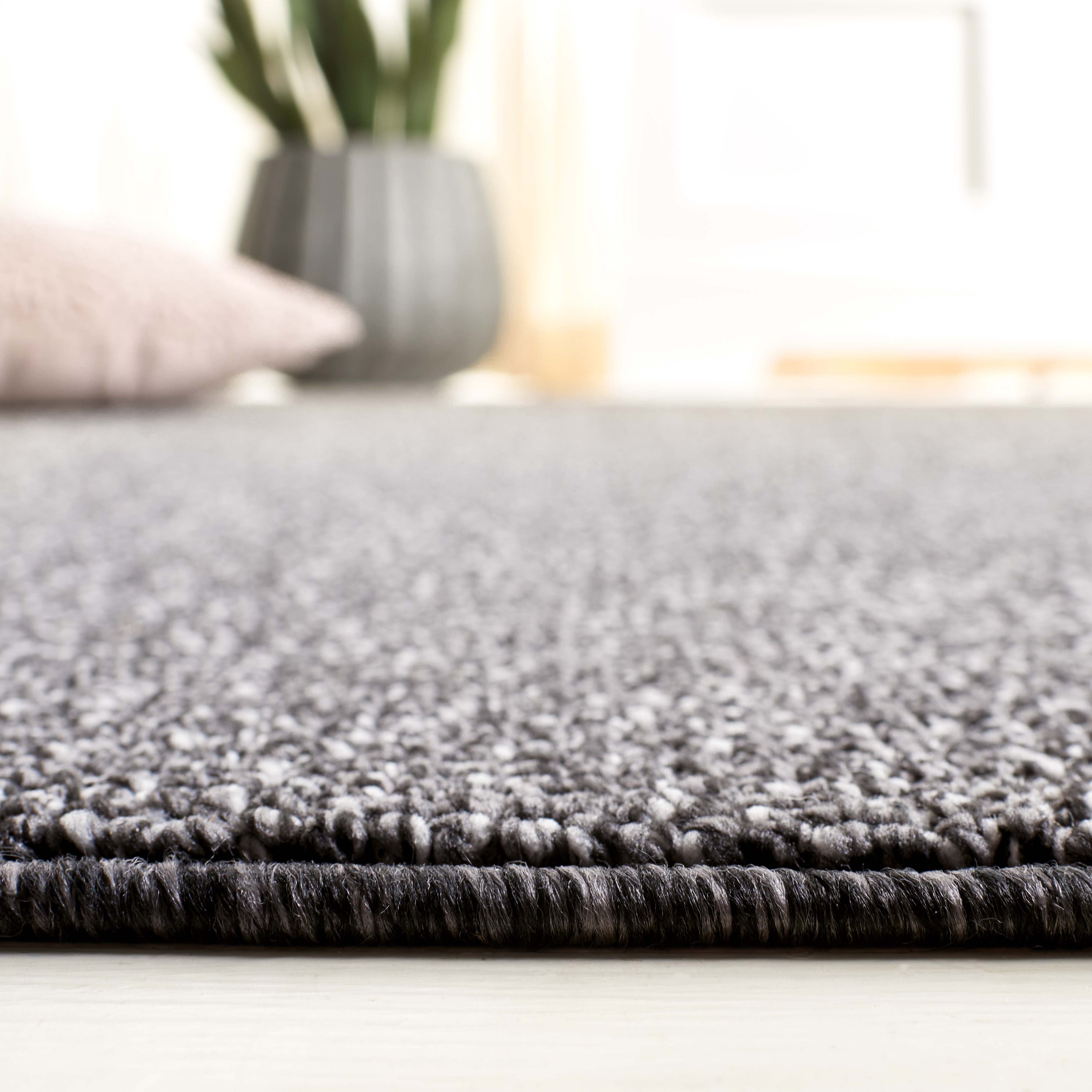 Built to endure everyday life while maintaining its pristine appearance, the robust polyester construction offers both softness underfoot and durability. The design of the rug, displayed in the image, showcases a solid and tonal style with a subtle texture that provides a visual harmony without overwhelming your existing decor.