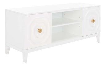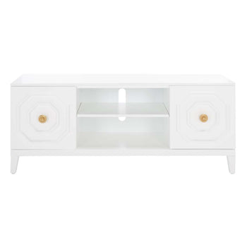 Give your entertainment space an eclectic modern feel with this fabulous Riya Media Stand. The carved concentric square details on Riya's two doors emanate rich artistic depth, and its clean white finish seamlessly accents existing furnishings.