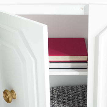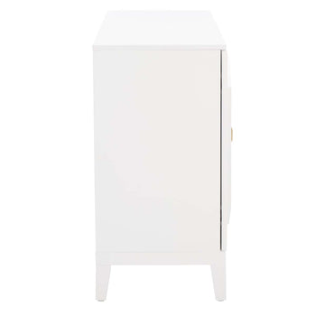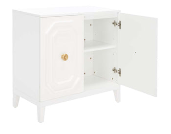 Eye-catching and fashion-forward, this Riya Cabinet gives an eclectic modern feel to your Decor. The carved concentric square details on Riya's two doors emanate rich artistic depth, and its clean white finish seamlessly accents existing furnishings.