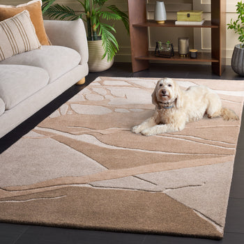 Transform your living space with this elegant grey and beige area rug, perfectly sized at 5 0 by 8 0. The medium rectangle design with a height of three quarters of an inch effortlessly completes any room, offering comfort and subtle sophistication. Experience the luxurious feel of a hand-tufted rug crafted meticulously from 80 percent wool and 20 percent cotton, bringing together comfort and durability.