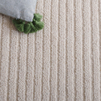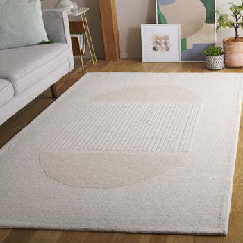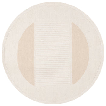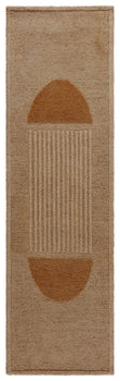 The contemporary style of this runner rug is expressed through a harmonious blend of Ivory and Beige tones, which enhance its visual appeal and easily blend with a variety of decor settings. The design features a sophisticated pattern, distinguished by a geometric play of solid and textured shapes that lend a unique character to the piece.