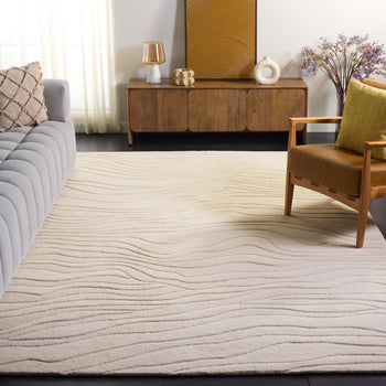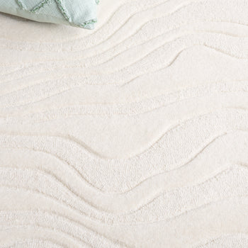 Crafted in India, this rug exudes quality and durability, making it a timeless addition to your home. The modern style is distinguished by an elegant undulating pattern that provides a subtle yet dynamic visual interest, infusing your room with a serene and sophisticated aesthetic.