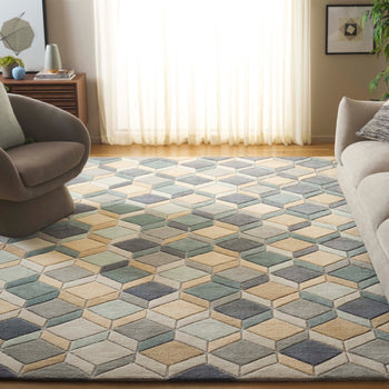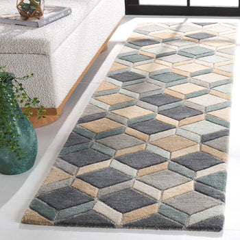 Introducing our exquisite runner area rug, a perfect blend of elegance and functionality for any contemporary home. At a versatile size of 2 feet 3 inches by 8 feet and a comfortable pile height of 1/2 inch, this hand-tufted wonder is a testament to craftsmanship and design. Made in India, the rug features an intricate pattern of geometric shapes in soothing shades of beige and grey, interwoven with subtle hues that create a harmonious look.