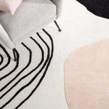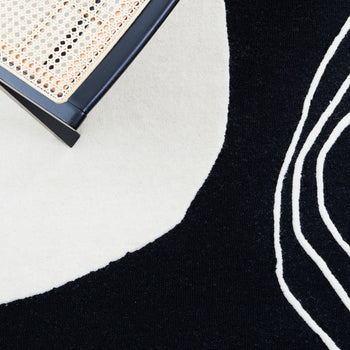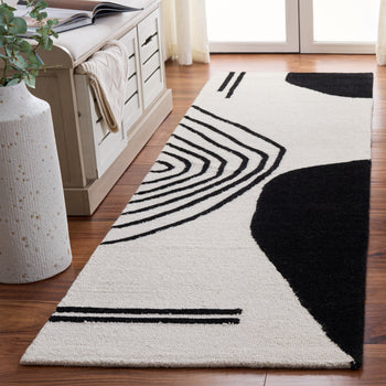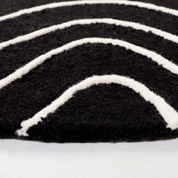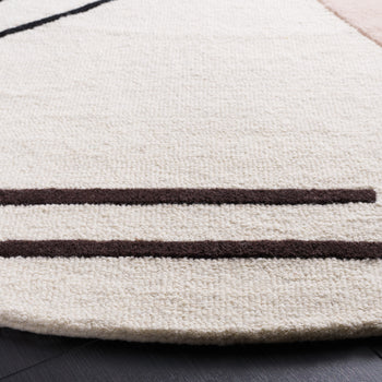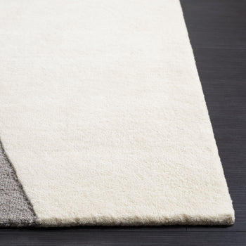 Elevate your living space with this exquisite hand tufted area rug, crafted in India. Its shape fits perfectly in any room. The contemporary geometric pattern in brings a modern touch to your decor, catching the eye and sparking conversation. Made from a blend of wool and cotton with latex, the rug offers a soft yet sturdy surface, adding comfort and style. Its 3/8 inch height is perfect for high foot traffic areas, providing a balance of function and aesthetics. Transform your home today with this beautiful piece that seamlessly merges design elegance and practicality. Ideal for those who seek to enhance their interior with flair and sophistication.