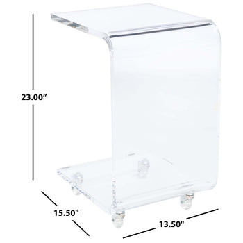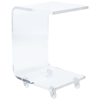 Smart and chic, this Rollins Bar Cart is a must-have for the stylish entertainer. Rollin's airy acrylic C frame is deal for wheeling drinks and barware from room to room, elevating any get-together into a high-fashion cocktail party. Transparent castors complete the look.