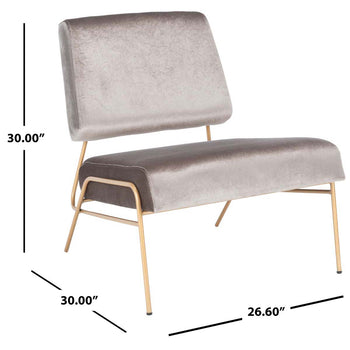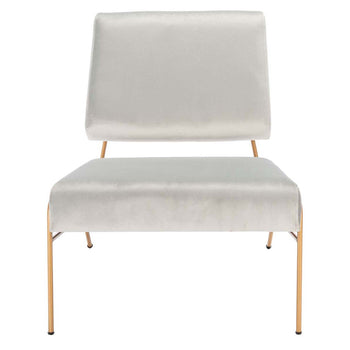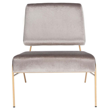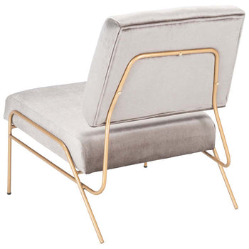 Styled after the iconic Cantilever chair, this Romilly Accent Chair updates retro chic for today's glamorous interiors. Plush velvet cushions in soft grey are perfectly juxtaposed with the shining gold finish on the slender open frame, and a relaxed silhouette makes Romilly luxuriously comfortable.