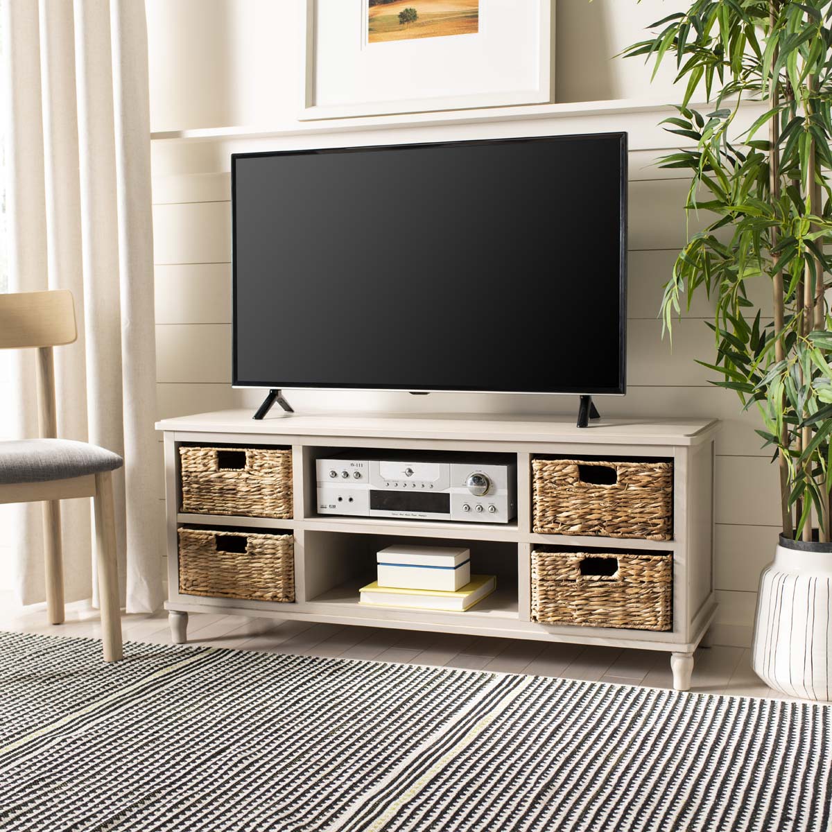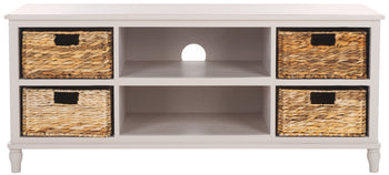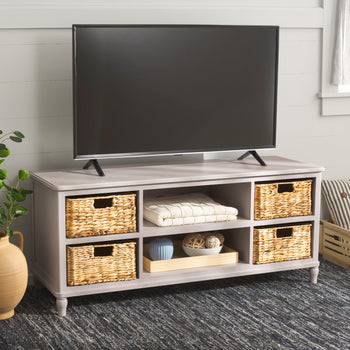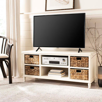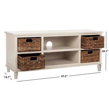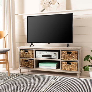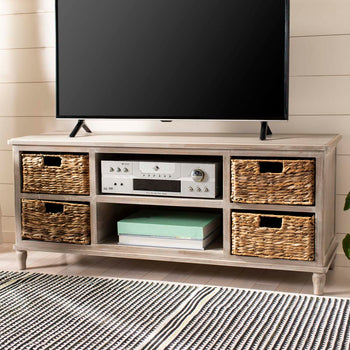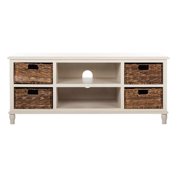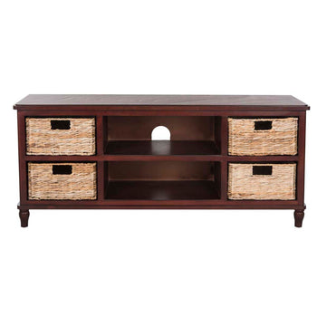 Ideal for coastal and country interiors, this Rooney TV Unit is the perfect organization solution for the den or living room. Four natural rattan baskets effortlessly store remotes and other entertainment essentials, while a rich cherry finish makes Rooney absolutely timeless.