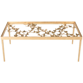 This butterfly coffee table was inspired by a handcrafted piece created by master goldsmiths for an Italian princess'sTuscan estate. Ethereal and timeless, this modern heirloom's antique gold finish and sculptural detail bring visual splendor to any Decor.