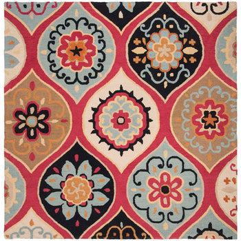 The captivating design boasts a vibrant blue multi-color palette that breathes life into the space. The intricate pattern of our rug showcases a harmonious blend of floral and geometric motifs, combining bold and subtle hues to create a striking visual statement.
