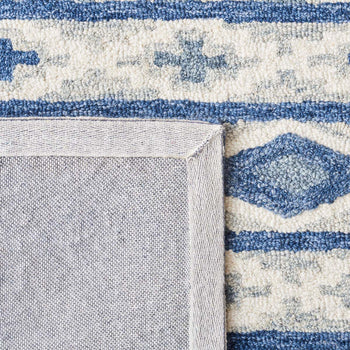 The elegant blue and grey colors meld together in a sophisticated pattern, reminiscent of traditional craftsmanship with a modern touch. The intricate design features geometric shapes and diamond motifs that bring a sense of depth and texture to any floor surface.