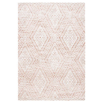 Crafted with an 80% Polyester and 20% Cotton blend, this rug promises durability without compromising on softness. The Hand Loomed construction ensures each piece is one-of-a-kind, woven with attention to detail and quality. The rug showcases a symmetrical geometric motif that draws inspiration from traditional designs, reimagined to suit modern tastes. The intricate pattern works harmoniously with the soft color palette, making it a versatile addition to your home decor.
