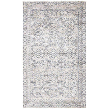 Enhance your living space with this exquisite hand-loomed area rug, skillfully crafted in India and sized at a versatile 4' X 6'. This small rectangle rug boasts a comfortable height of 3/8", providing a plush footing without being too thick. The rug features a sophisticated blending of grey and beige tones, creating a serene and neutral color palette that effortlessly complements various interior design styles.