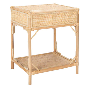 British Colonial style is reimagined for today's contemporary-coastal interiors in this Roya Nightstand. Roya's bamboo-style frame, open bottom shelf, and natural rattan drawer give it unique visual depth, while a matching natural finish ensures Roya complements any color scheme.