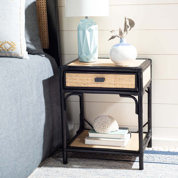 British Colonial style is reimagined for today's contemporary-coastal interiors in this Roya Nightstand. Roya's bamboo-style frame, open bottom shelf, and natural rattan drawer give it unique visual depth, while a matching natural finish ensures Roya complements any color scheme.