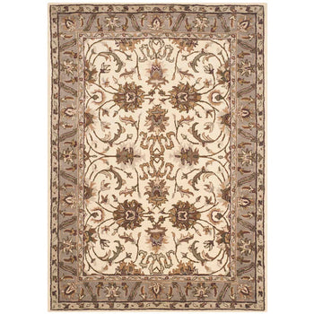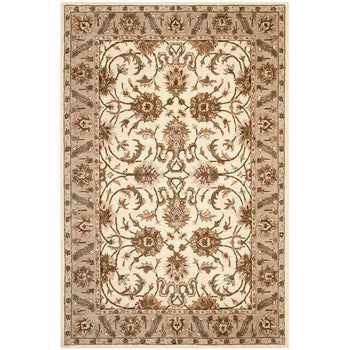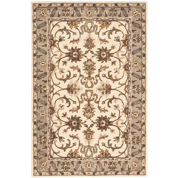 Elevate your living space with the timeless elegance of this 4' x 6' small rectangle area rug. Hand-tufted in India, this wool masterpiece boasts a plush height that embodies comfort and luxury. Revel in the beauty of its intricate design featuring a harmonious blend of ivory and dark beige tones that create a soothing neutral palette.
