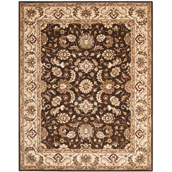The chocolate and beige color palette creates a warm, inviting atmosphere, while the intricate floral pattern encapsulates a classic aesthetic that will enrich any room's decor. Artful craftsmanship is evident in every detail, from the delicate petals to the ornate border that gracefully frames the rug, hinting at a heritage of artisanal rug-making.