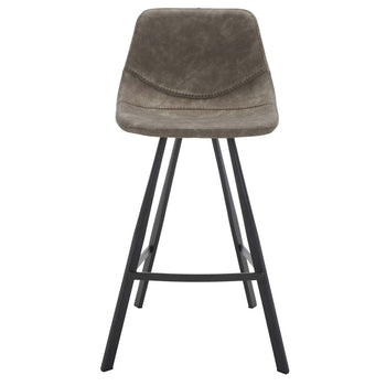 This Ryanne Counter Stool perfectly blends modern minimalism and cosmopolitan chic, making it ideal for today's stylish interiors. Exposed cross stich details create a lavish couturier look that beautifully enhance Ryanne's contoured profile in vintage grey vegan leather upholstery and dramatically angled legs.