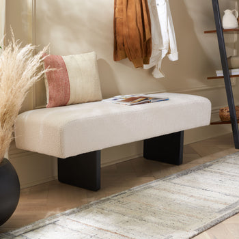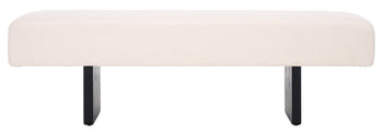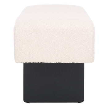 Cozy up your home with the rich textures and plush appeal of our Ryer faux shearling bench. A modern and clean-lined profile beautifully accentuates the plush upholstery of the bench. It is covered in the warm and cozy textures of faux shearling in a graceful hue. Elevated upon slim black wooden legs, our bench receives an airy lift. It lends an inviting seat and a dose of warmth to your bedroom, living space, or dining area.