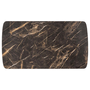 The luxurious Scandinavian style of this contemporary rectangle coffee table transforms any living room. Crafted to showcase the bold geometric design of its black iron legs, the softly rounded edges of its dark grey and black wood top make it a classic.
