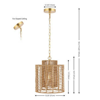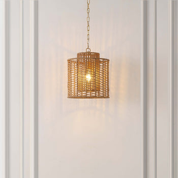 Illuminate any corner with the sleek and breezy style of our Ryoa extendable pendant. Two drum shades are artfully layered to deliver an airy and eye-catching pendant light. Adorned in a natural finish, the pendant effortlessly blends with a variety of styles, serving as a relaxed and sophisticated focal point. Its intriguing woven pattern creates a dramatic play of light and shadow to light up your entryway, bedroom, living, or dining area with a dose of warmth and charm.