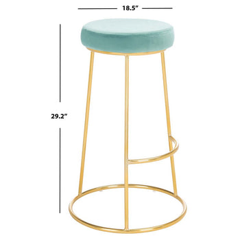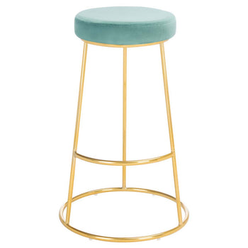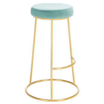 At once glamorous and minimalist, this Sabina Bar Stool gives any interior a touch of dramatic decadence. Sabina's plush seafoam velvet seat is beautifully paired with a sleek open gold frame, elevating the aesthetic of your living space with its artistic use of negative space.